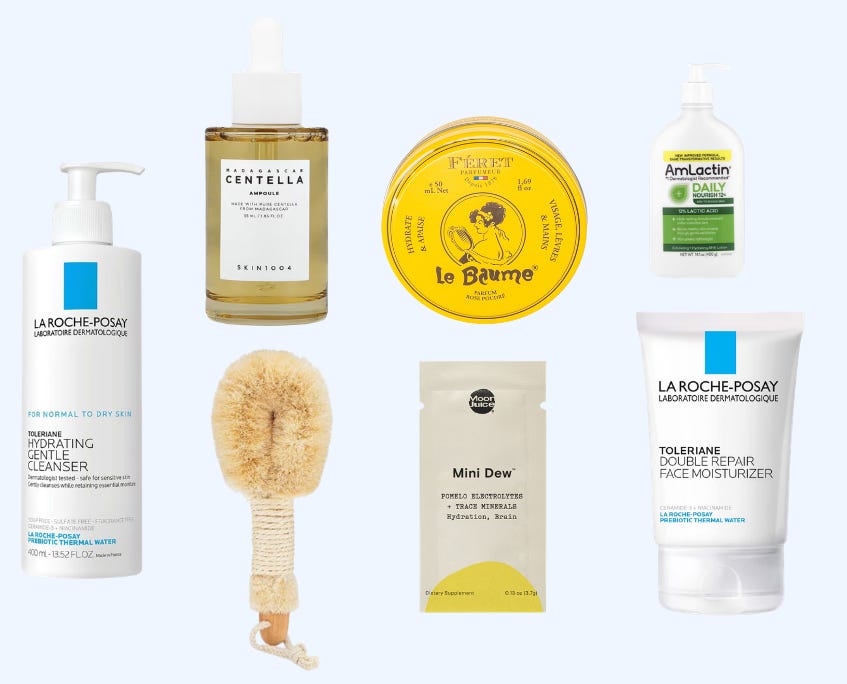 Long hot showers, napping (for the first time ever), early nights, slow mornings, nourishing comfort meals, and drinking lots of water are a few of the things I’ve been prioritizing. My skin has been extra sensitive, so I’ve shifted to a simplified routine, focusing mostly on hydration. I don’t often intentionally change my self-care habits with the seasons, but the shift has been a bit of a game changer.